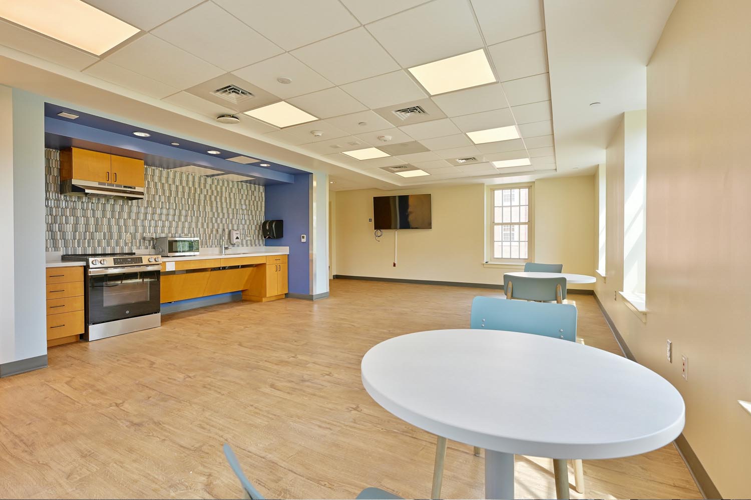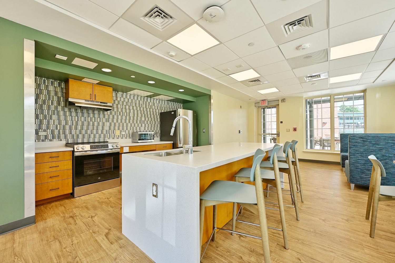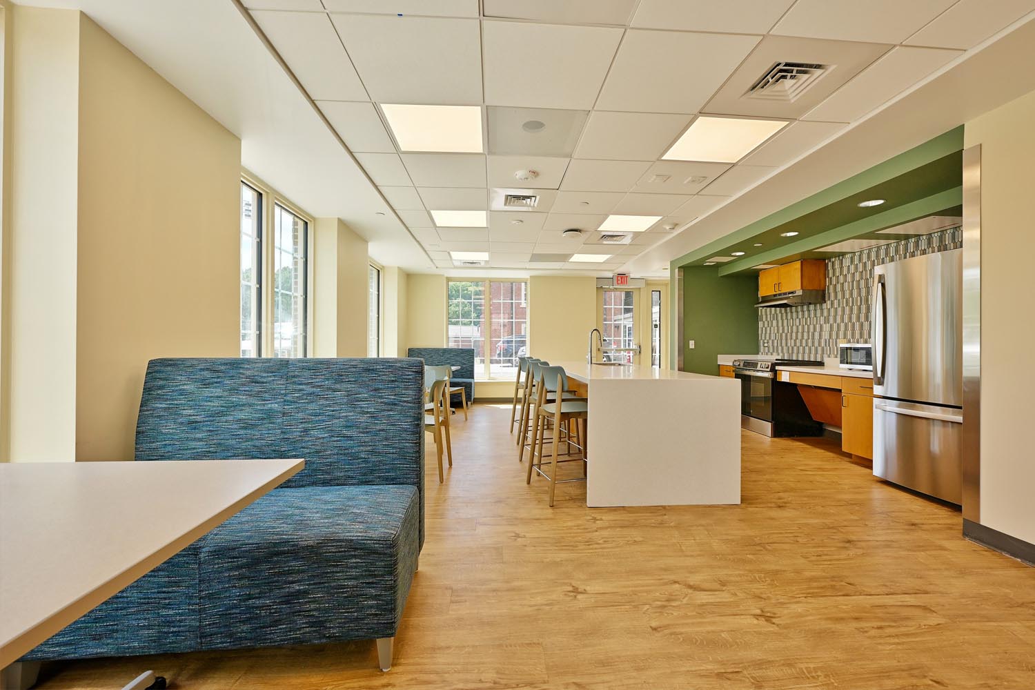 Additionally, a 4,570-SF expansion added a new elevator tower to provide ADA accessibility within the facility, while also adding new lounge and community kitchen spaces on each floor.