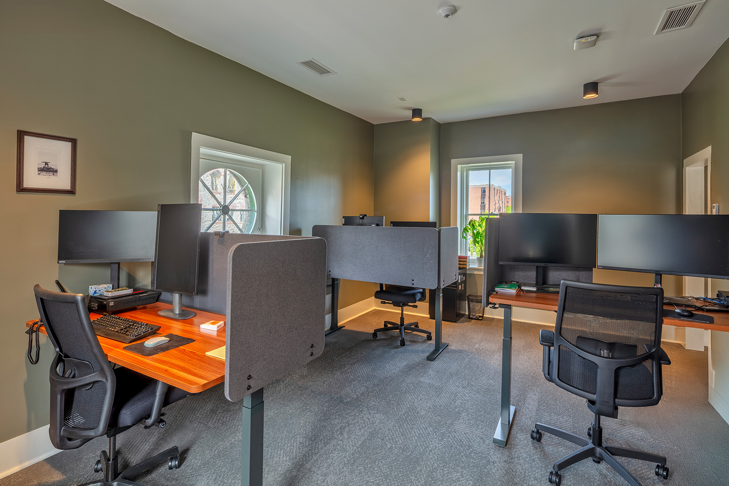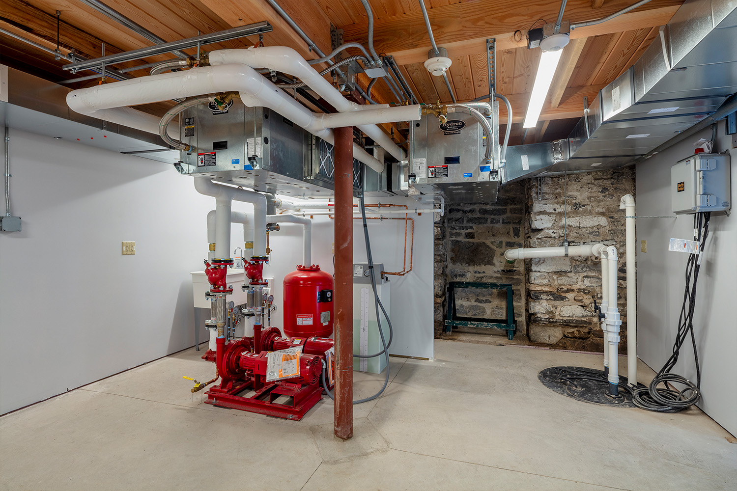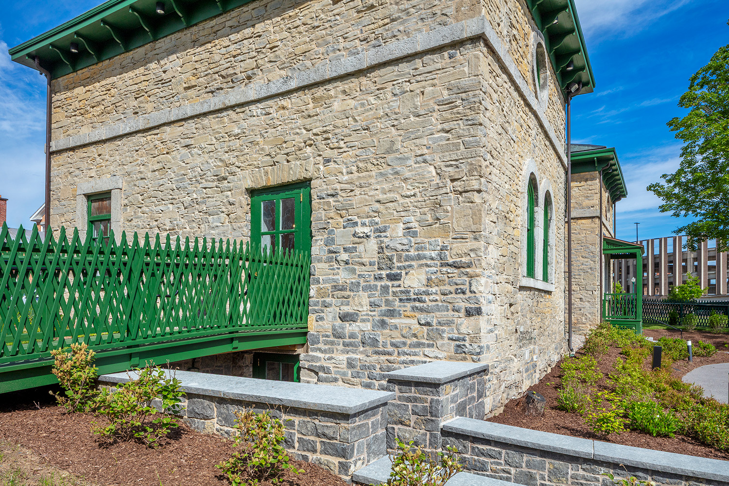 Work included significant structural repairs, updates to the foundation and interior improvements. The project also included the installation of modern systems for lighting and ventilation, and a new geothermal heating system – while maintaining the historic character of the buildings.