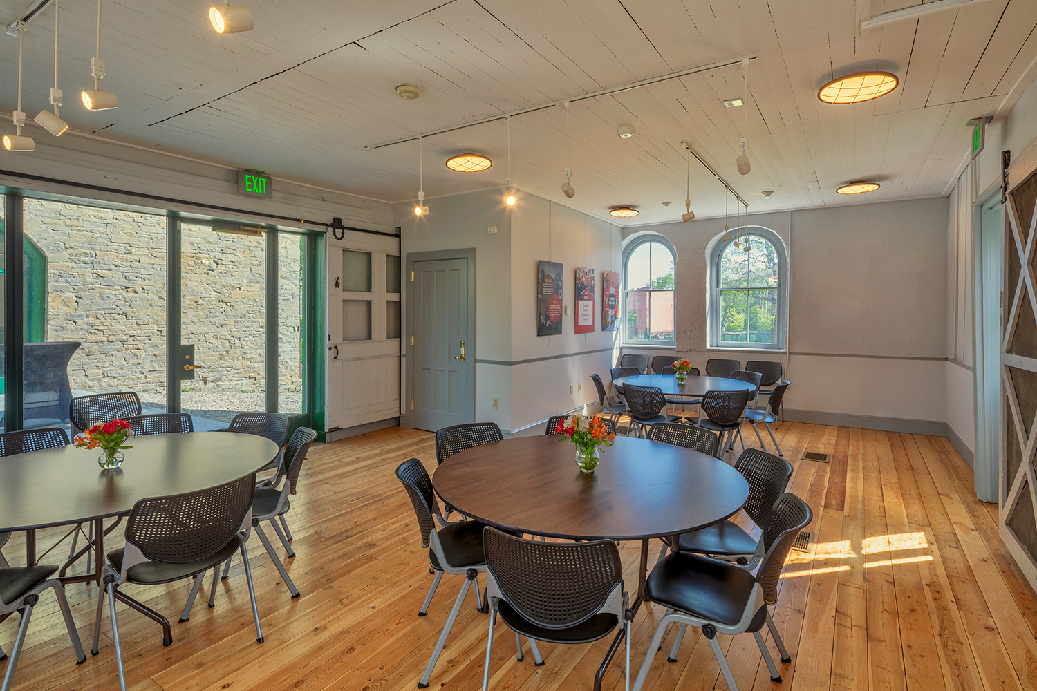 The barn was transformed into a flexible area for events and meetings, while the carriage house was restored to house former Secretary of State William H. Seward’s historic carriage along with exhibits and artifacts. The upper level of the carriage house now includes office space for staff.