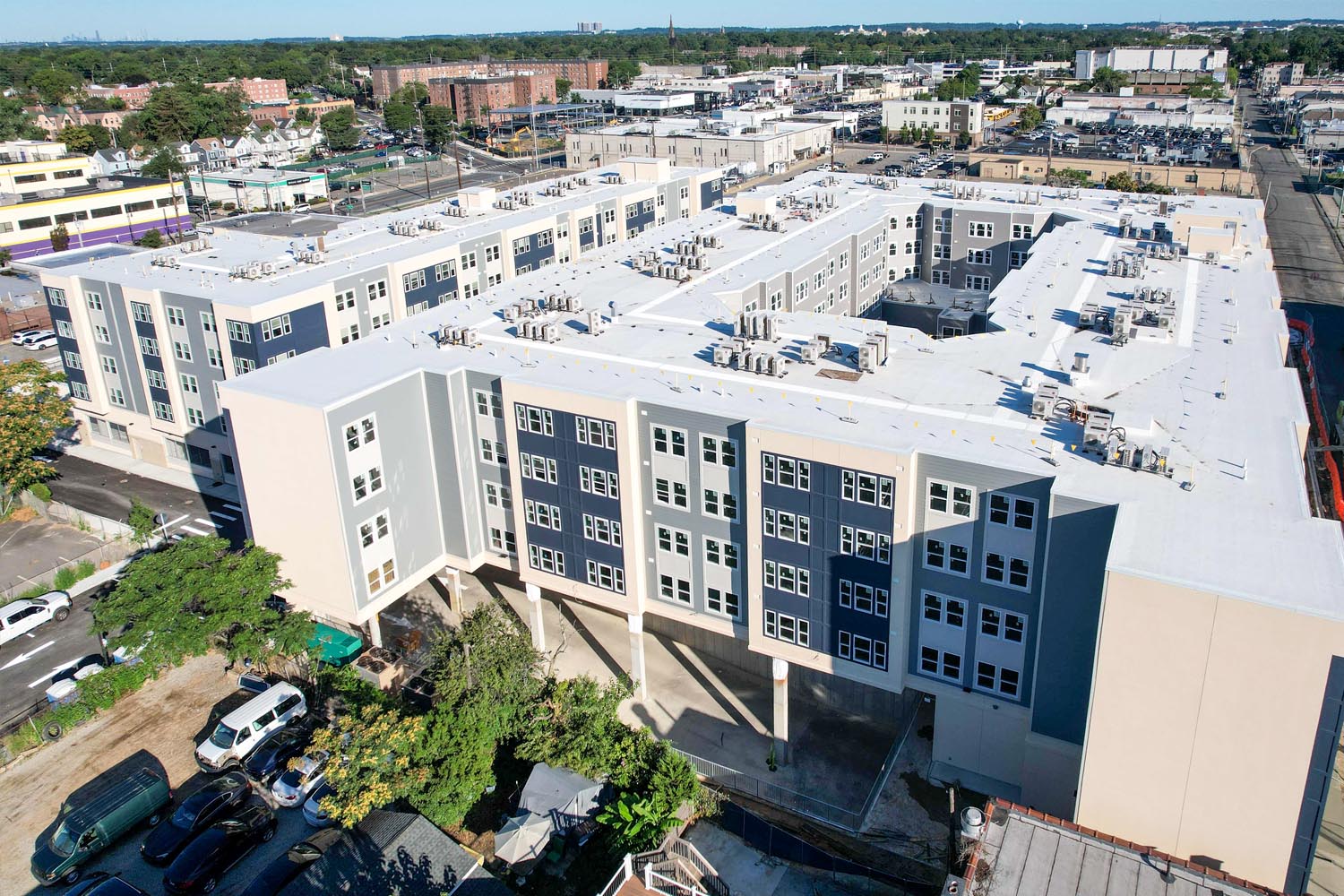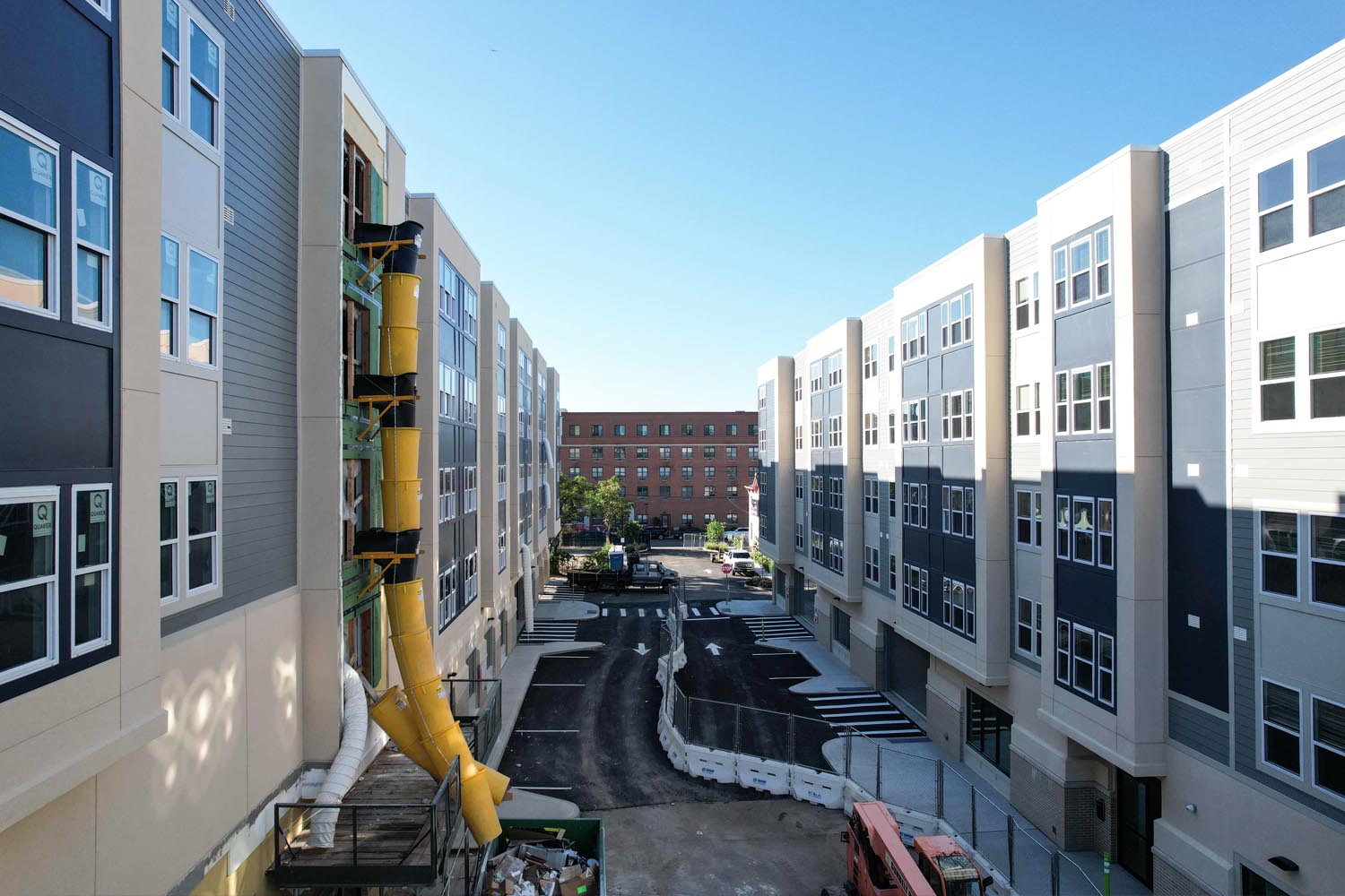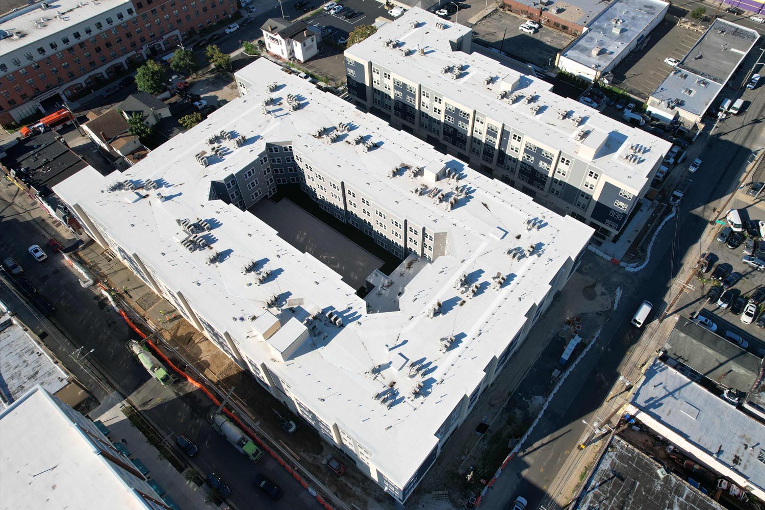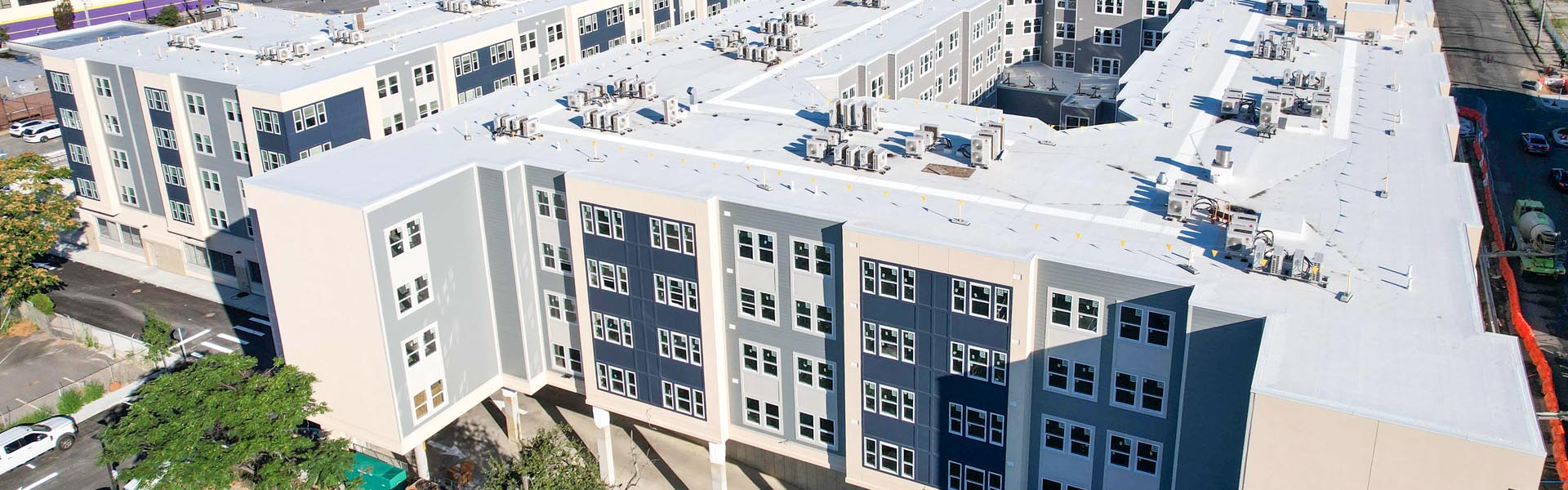 This project included the construction of two affordable housing buildings with shared parking and future retail spaces. Each five-story structure was built using a combination of poured concrete and wood framing, above an underground cast-in-place parking garage. One building includes 156 units, with the second building providing an additional 72 units. Both buildings also feature amenity spaces, community rooms and mechanical rooms.