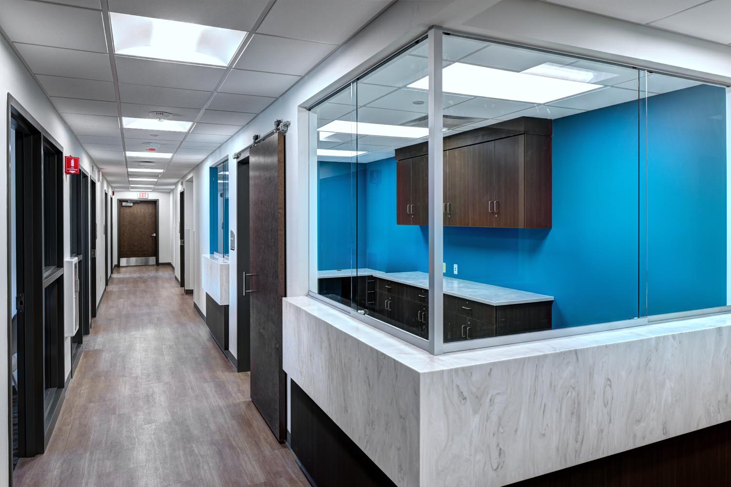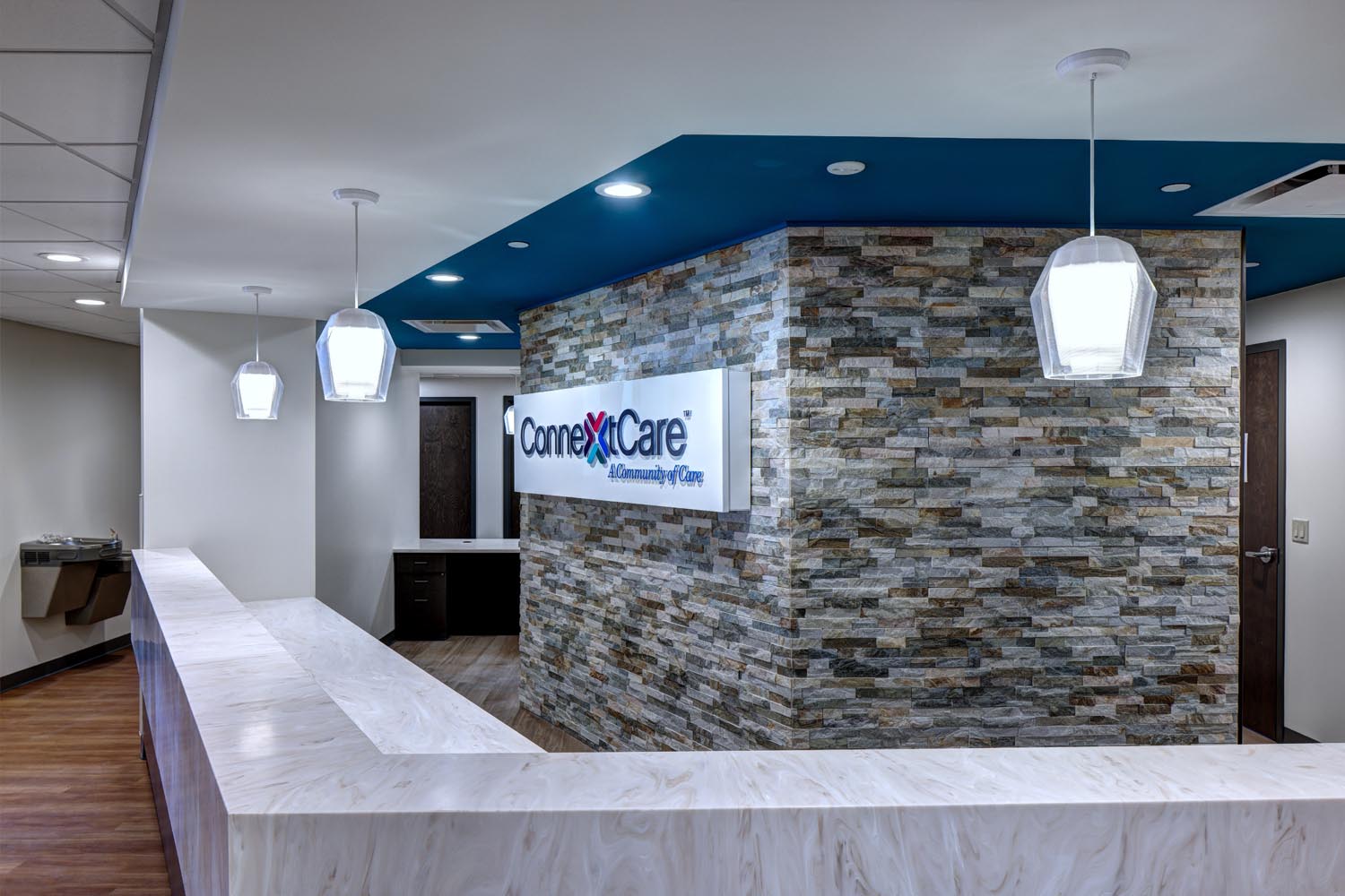 This project involved converting a 30,000-SF office space into modern healthcare spaces to support the relocation and expansion of ConnextCare’s operations. The building’s second floor now provides primary care services, featuring 17 exam rooms, a treatment room and clinical support spaces.