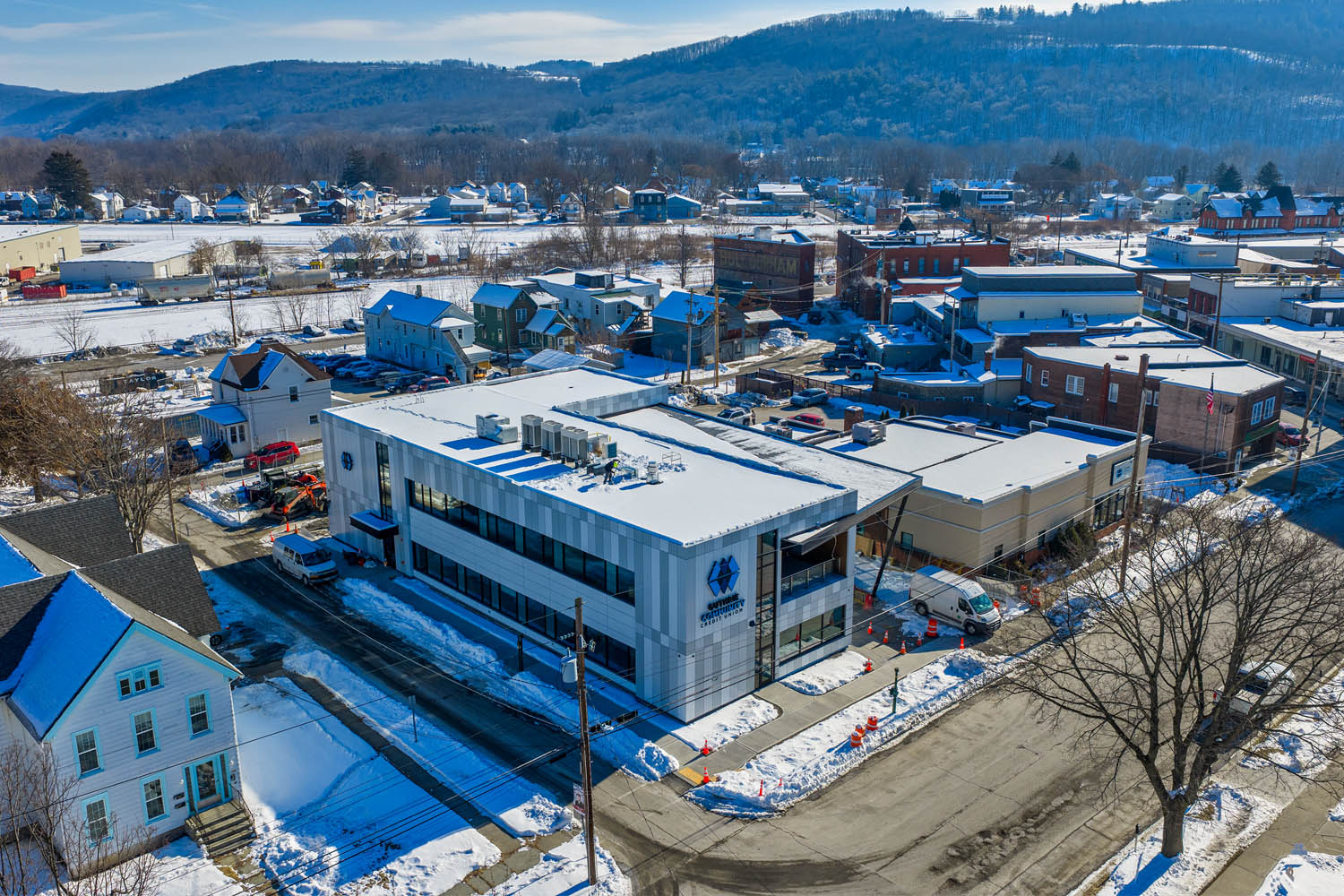This project included the construction of a new two-story, 14,000-SF headquarters for Guthrie Community Credit Union in Sayer, PA. The modern facility features office space, a drive-through window, a 1,000-SF community room and a range of amenities designed to enhance the member experience.
