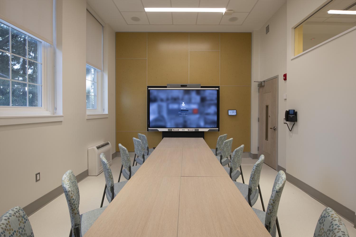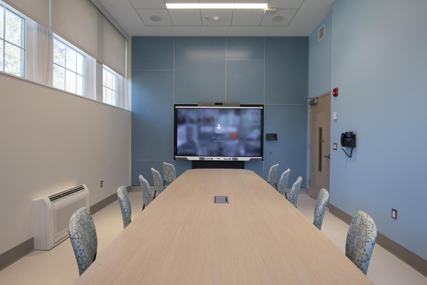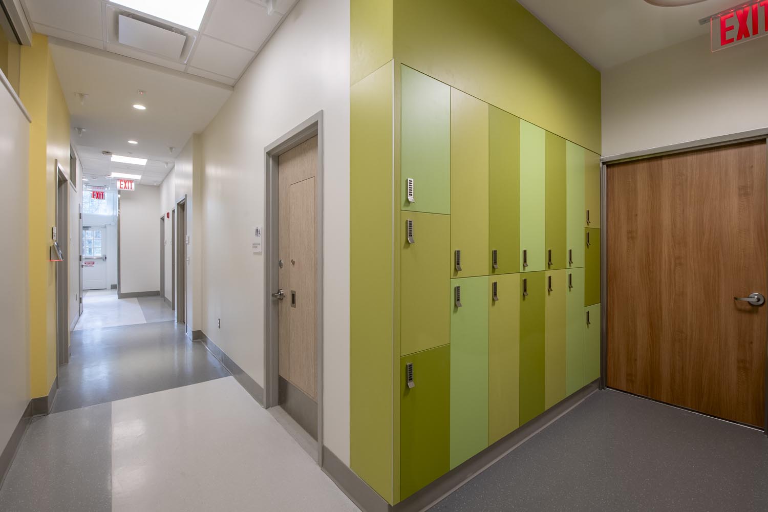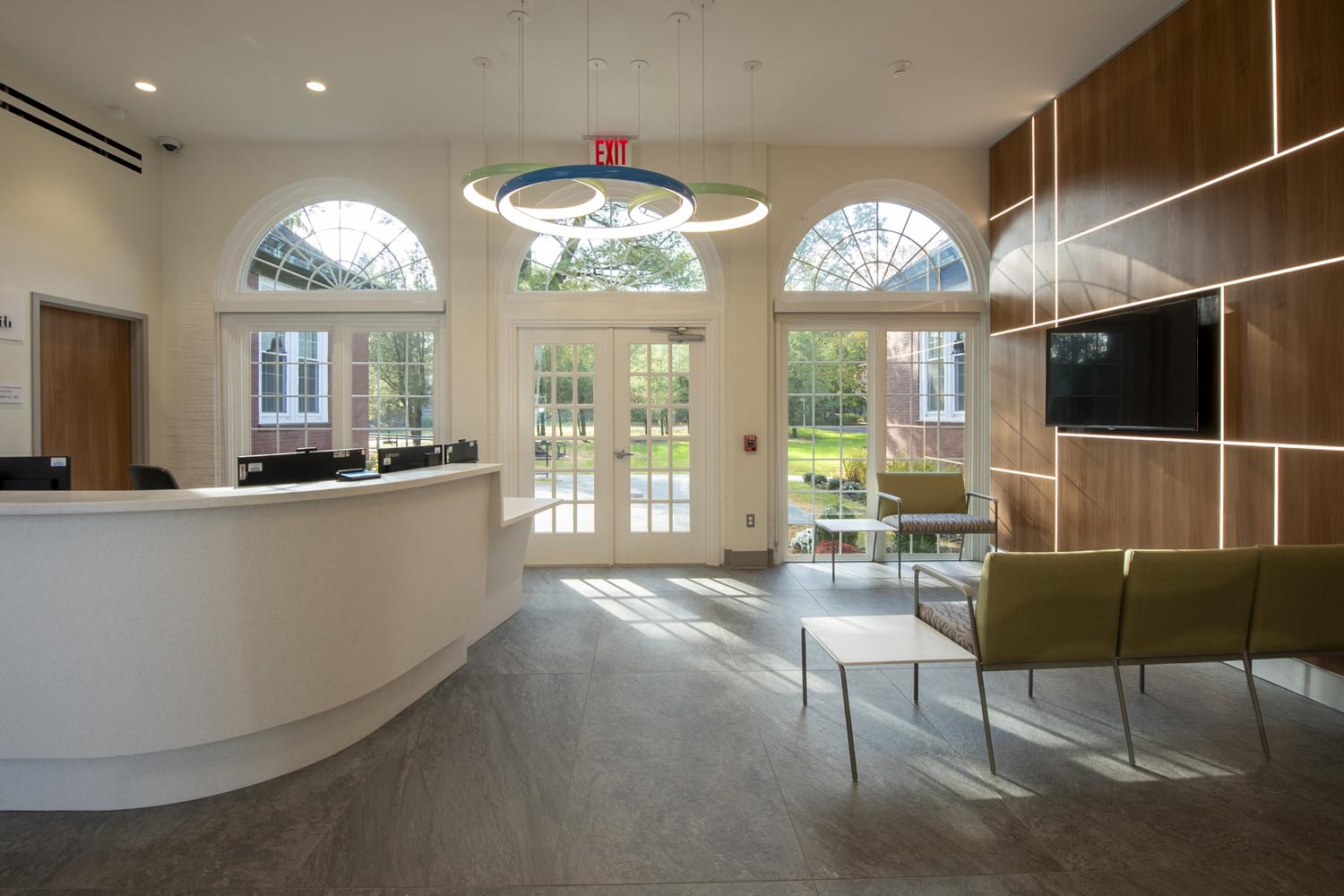 The renovated facility now includes a new therapist’s office and dedicated work areas for social workers, creating an environment tailored to patient and staff needs. The project also included significant site improvements, replacing an abandoned tennis court with a new drive loop and upgrading the stormwater filtration system.