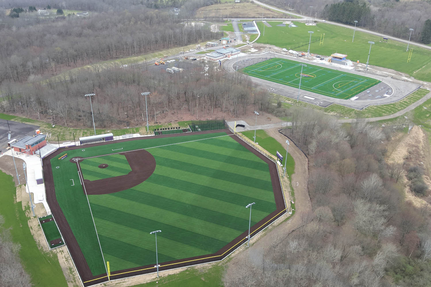 - A new synthetic turf baseball field with bullpens, dugouts, batting cages and pitching mounds.