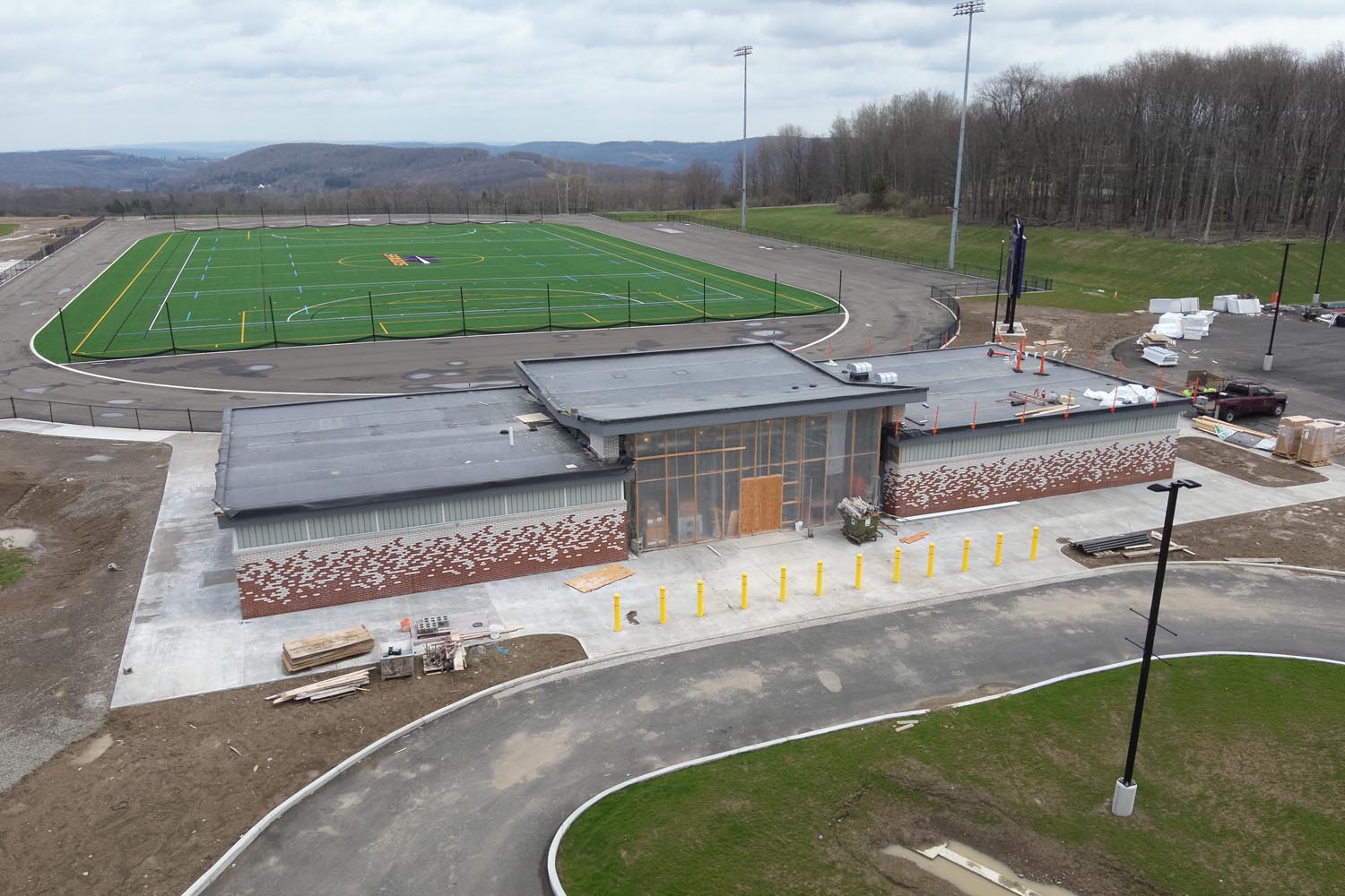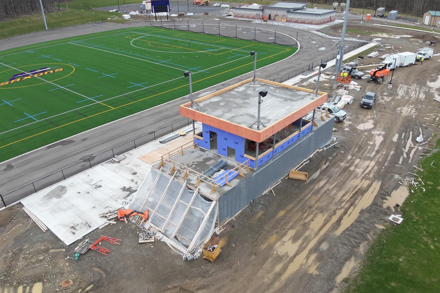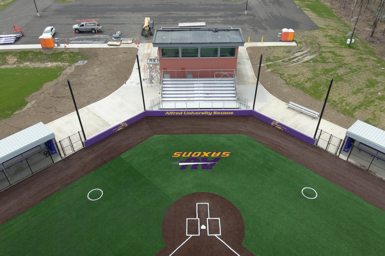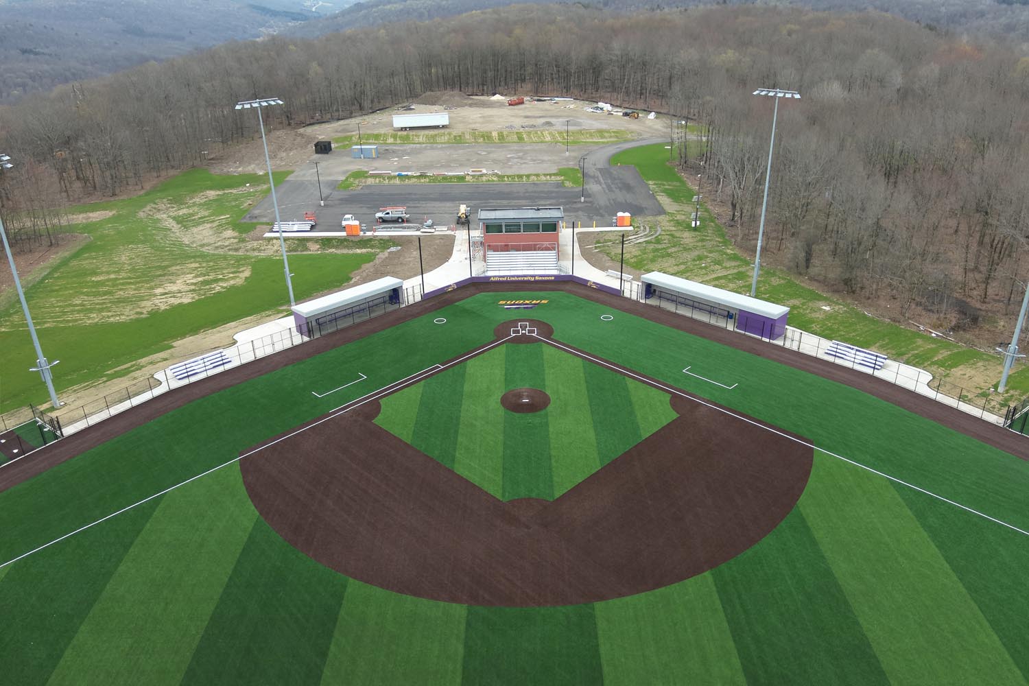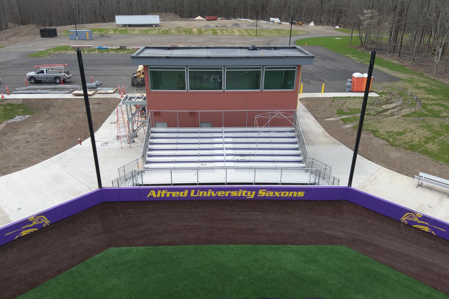 This project involves the construction of a new state-of-the-art sports complex at Alfred University. The complex will include a sports center with locker rooms, a training room, a media room, offices and gathering areas. A new grandstand building will feature a dual-sided press box, public restrooms, a VIP lounge and bleacher seating for approximately 2,000 spectators. A new baseball building will also be added, with a press box, locker rooms, team rooms, concessions and a training space.