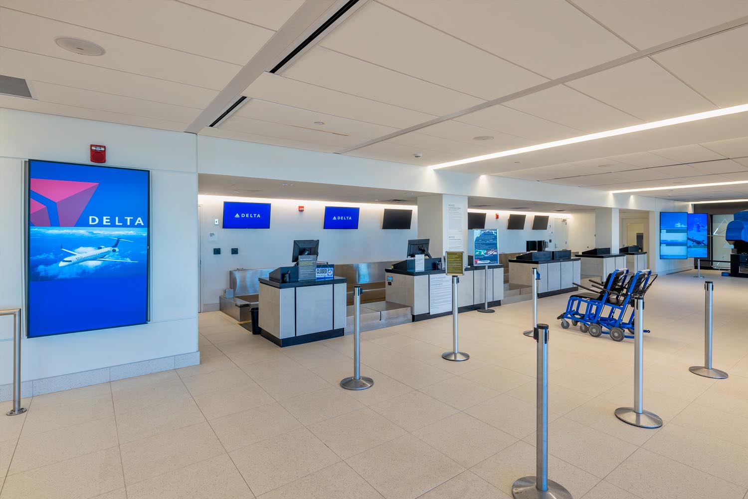 Inside, upgrades were made to the existing terminal area, restrooms, lobby and baggage areas. The electrical and mechanical systems also underwent major upgrades. In addition, the project added two new boarding bridges, new TSA equipment and newly paved drive areas and parking. A new geothermal well field was installed in the existing rental car parking lot to provide heating and cooling to the facility.